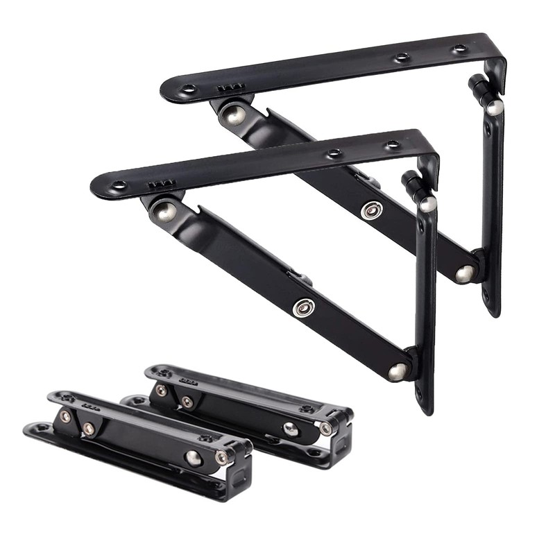 - SPACE SAVING The folding shelf brackets are 90 degree snap into place. Space saving is one of the features of folding stands. If you want to reduce the area, simply press the trigger arm.