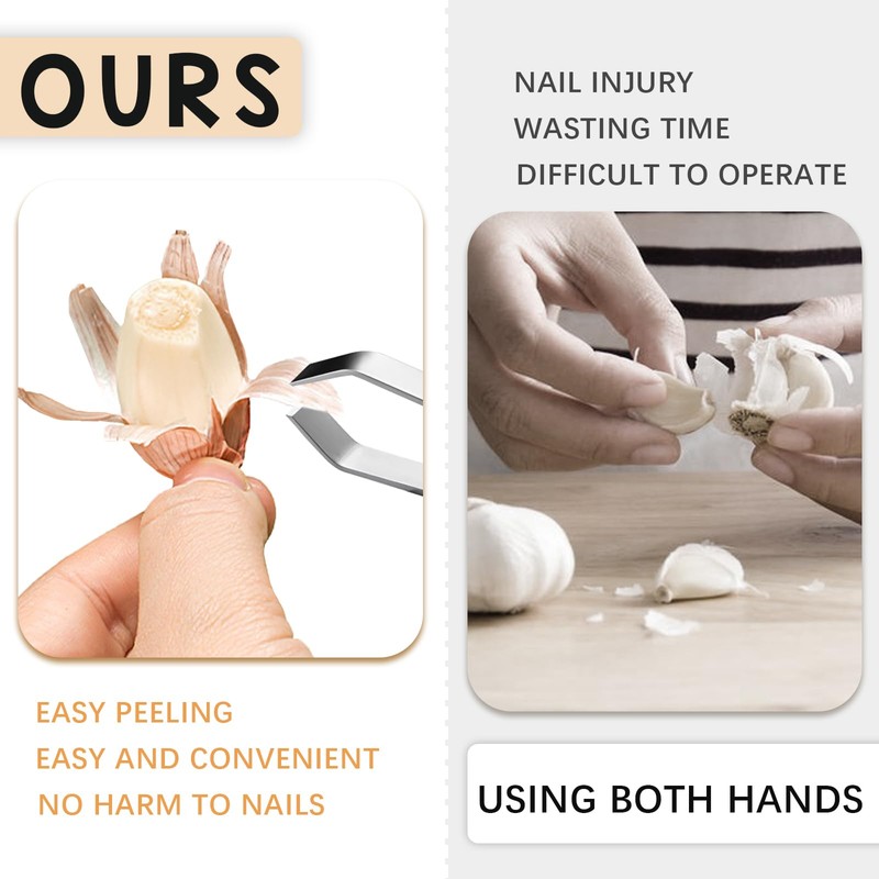 - Save time and effort: Using stainless steel tweezers can peel garlic faster and cleaner, designed to remove garlic skin without crushing or damaging the garlic itself, faster and more effective than traditional peelers or drum tubes.