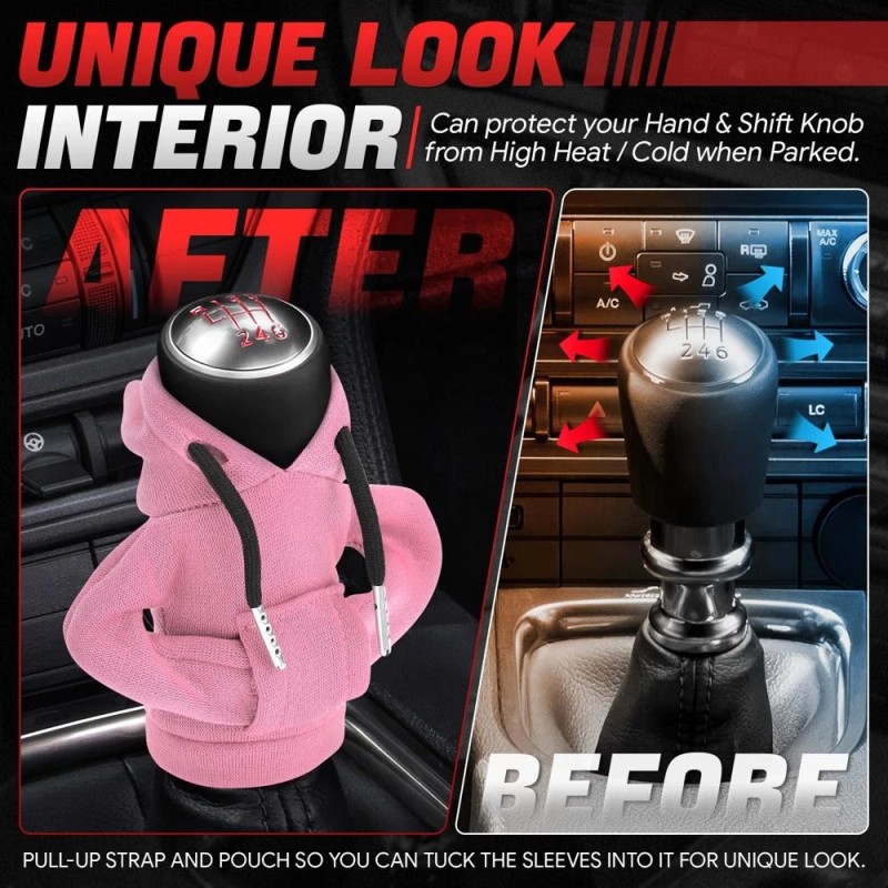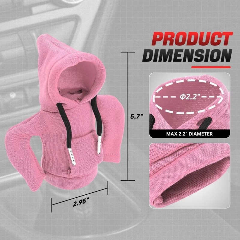 Give your interior a cozy, custom touch with this miniature shift knob hoodie. Designed to fit shift knobs up to 2.2" in diameter, it features a pull-up strap and a built-in pouch that lets you neatly tuck in the sleeves, creating a sleek, one-of-a-kind look that stands out.