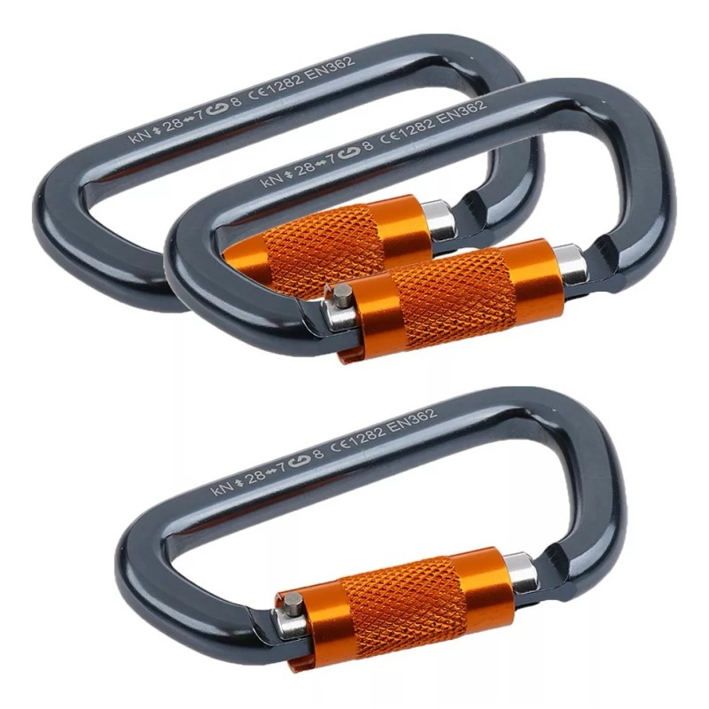 3 Piezas 28KN Mosquetón D Forma de Aluminio Bloqueo de Torsión