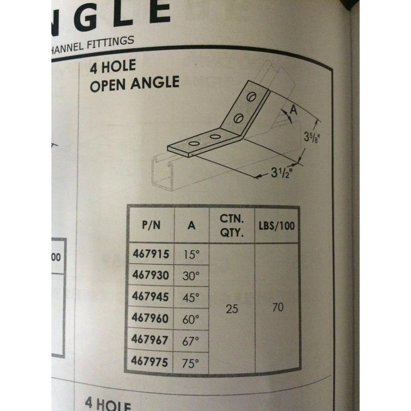 4-Hole 45° Open Corner Angle Fitting Unistrut Channel #467945 P2265 Zinc / EG