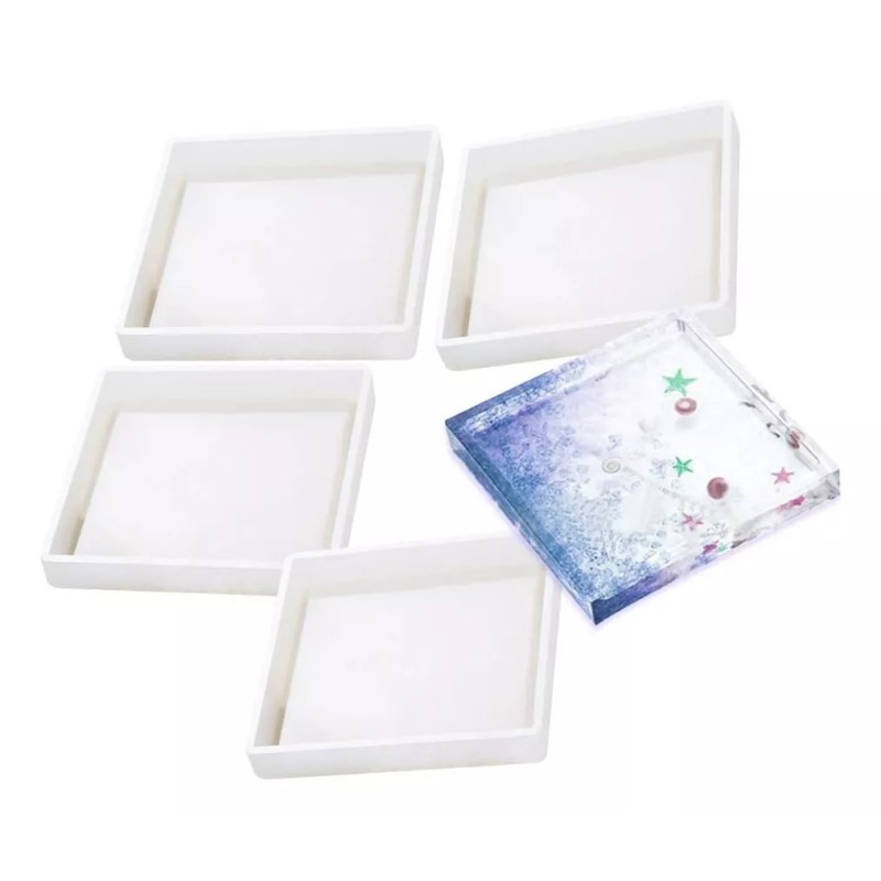 generic 4 Moldes Cuadrados Silicona P Posavasos Para Resina Hormigón