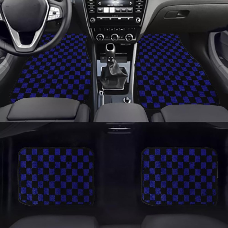 Generic 4PCS UNIVERSAL CHECKERED STYLE BLUE Fabric Car Floor Mats Interior Carpets