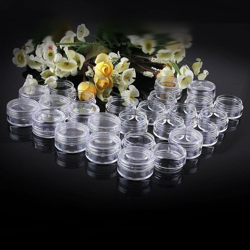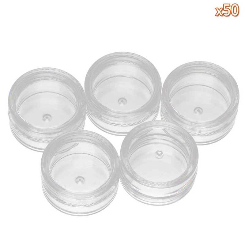 - 50 units x 5 Gram clear plastic cosmetic multi-purpose jar container pot with clear threaded cap.