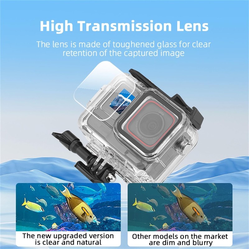 - 【High Quality Material】 PC+Stainless Steel+Acrylic material is waterproof and durable. high light transmittance, compression resistance and restores the clarity of the camera. Waterproof up to 60M/196FT, ideal for diving, surfing, snorkeling and other water sports activities.