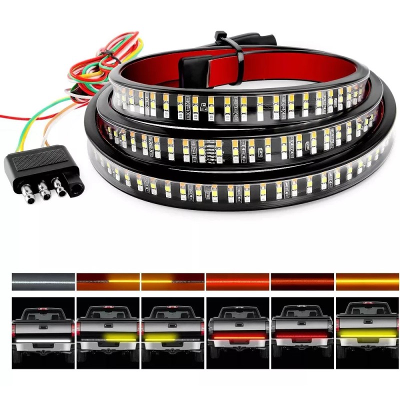 Barra for portón trasero de camión, 150 cm, triple fila, 504 LED con freno rojo, señales de giro ámbar secuenciales, luces estroboscópicas