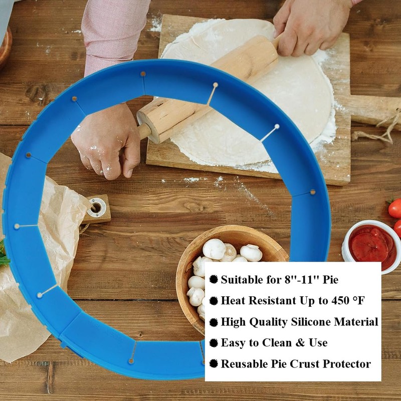 - Heat Resistant Pie Rings for Crust Adjustable: The silicone pie protector can resist heat up to 450 °F which can be perfectly used at extremely high cooking temperatures. Fit any size from 8 inch to 11.4 inch Pie