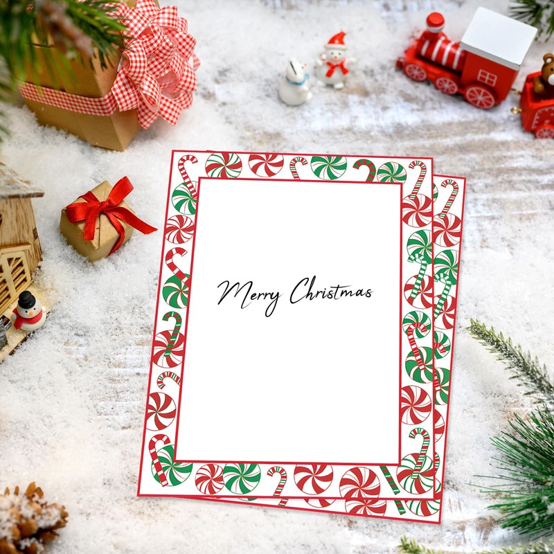 - CHRISTMAS THEME: Featuring a theme of Christmas, patterned with red and green xmas candy canes on the edges, festive and delicate, perfect for Christmas letterheads, decoration paper, and printable background paper.