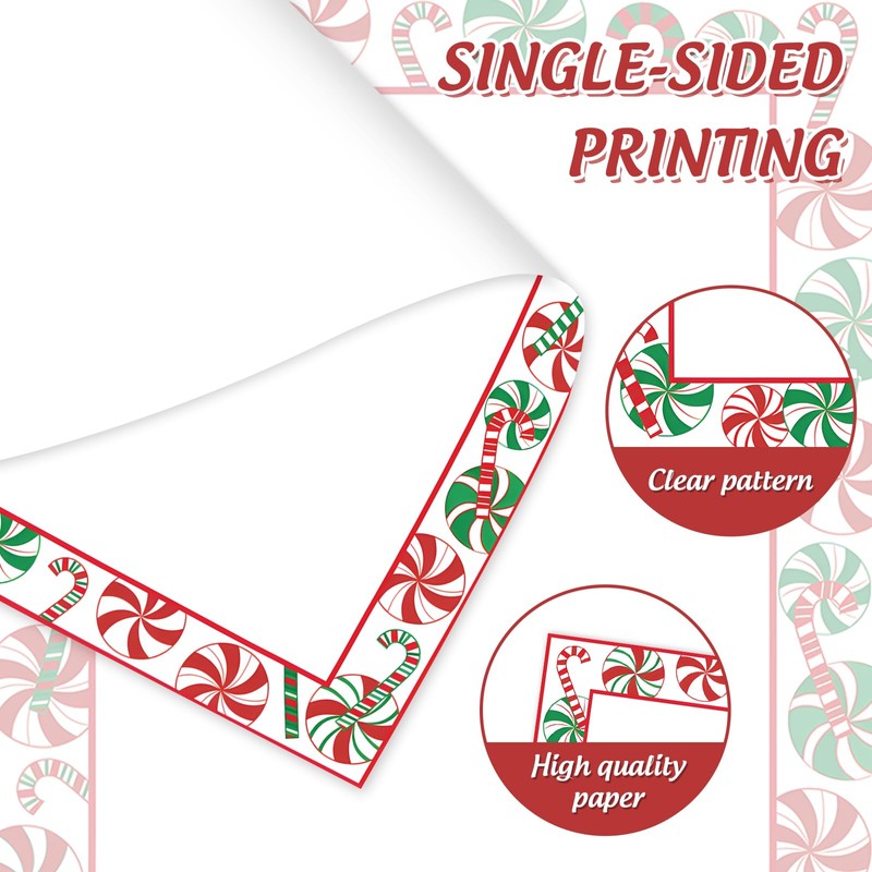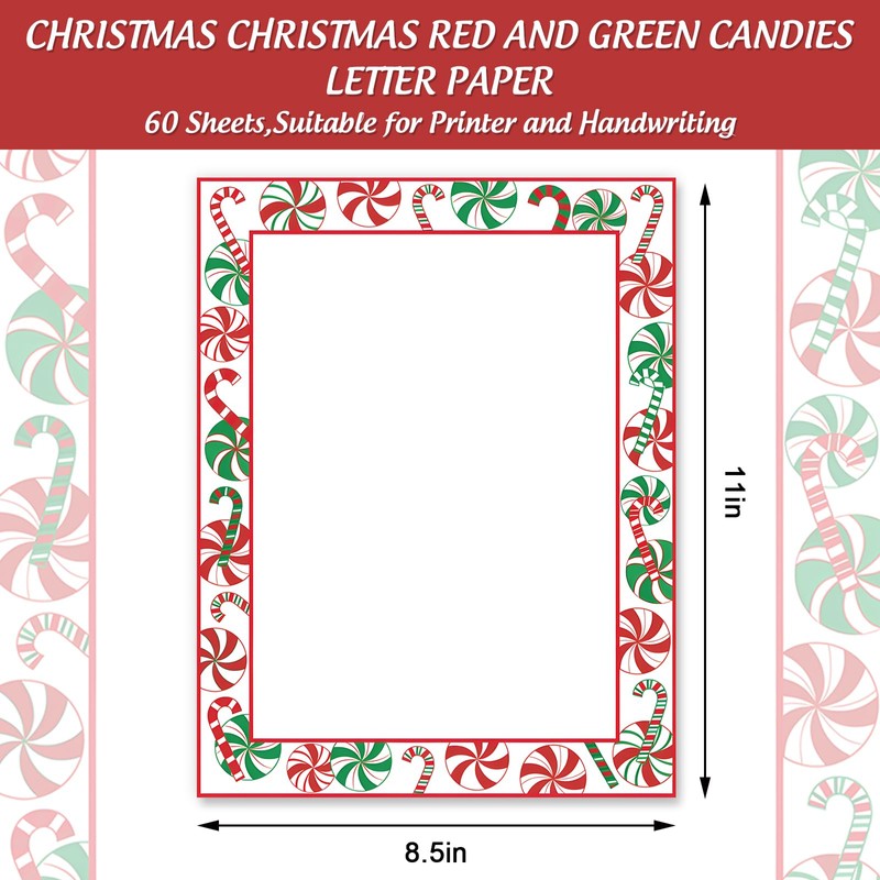 60 sheets Christmas letter paper with candy cane prints, sufficient quantities to write down your wishes and greetings to your family, friends and Santa.