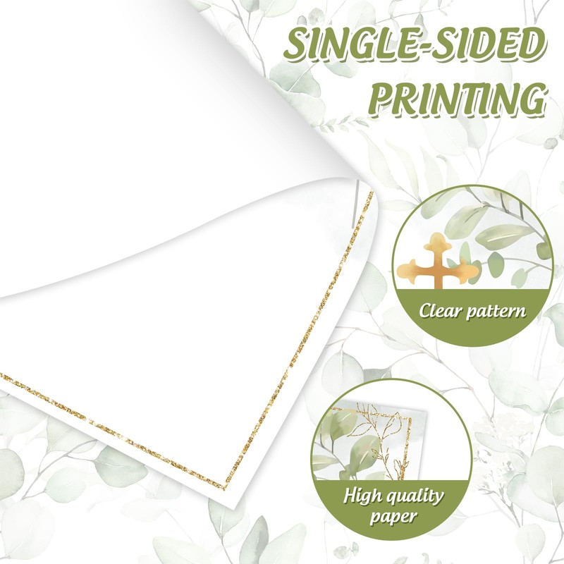 - FRESH DESIGN: Patterned with watercolor green leaves, gold border and cross, holy and full of Christian style, suitable for many occasions.