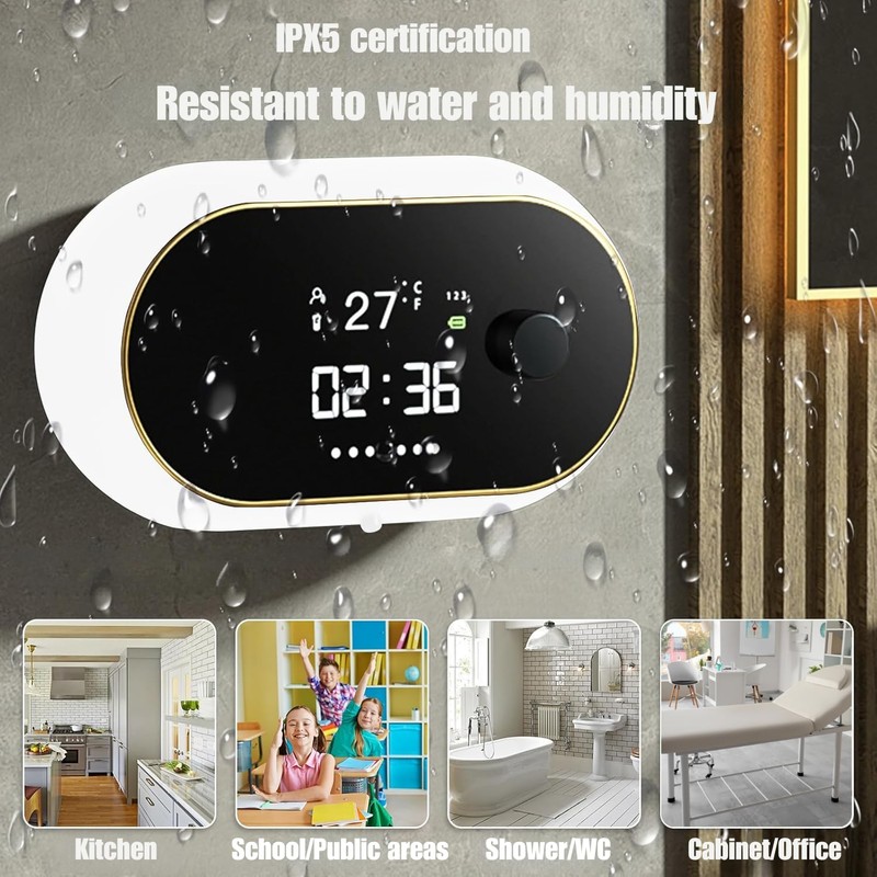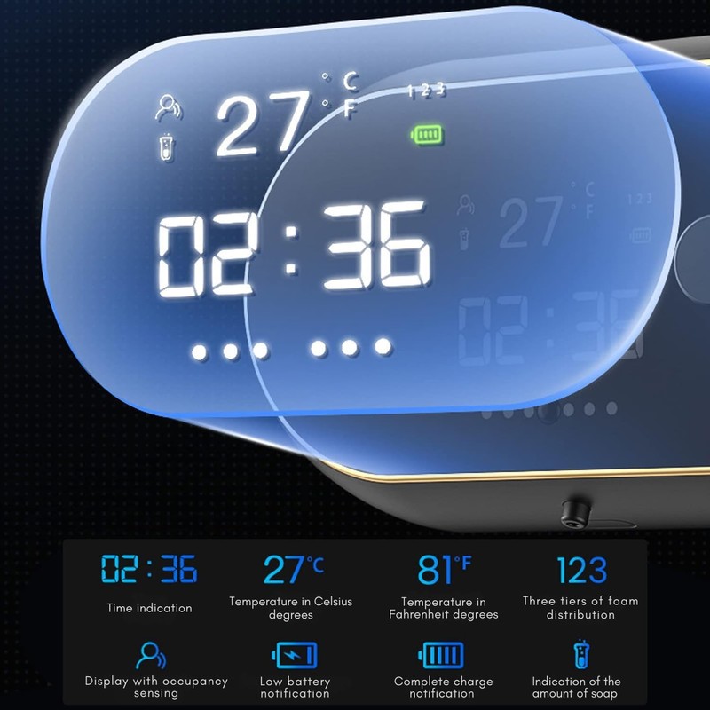 Generic Automatic Foam Soap Dispenser with Non-Contact Sensor Wall and No Drilling with LCD Display Stylish and Pro for Bathroom Foam Pusher Kitchen Business School (Black), SOA-DIST-01