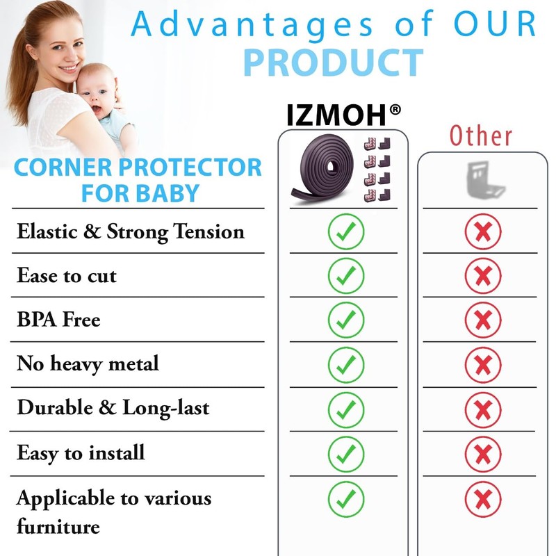 - 😊 CLEAN SAFETY: uses safe and pure raw material and was the first brand to make foam safety bumpers without the use of toxic flame-retardant chemicals (SCCPs). Our edge corner guards contain no BPA, no phthalates, no heavy metals, no latex, no SCCPs. Inherently flame-resistant; passed flammability tests under US regulations.