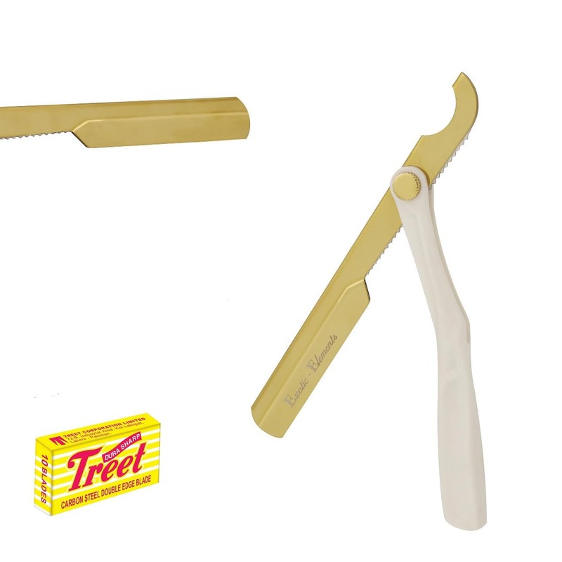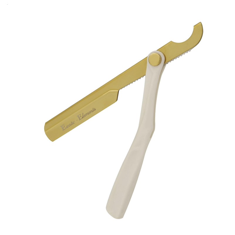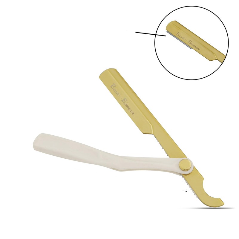 Barber Shop Straight Edge Razor Close Shaving Knife Men’s Single Blade Folding Razor - White and Gold - Easy Use