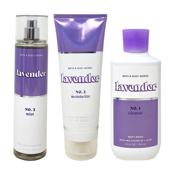 Generic Bath and Body Work LAVENDER 3 Step Gift Set - Fragrance Mist - Body Cream and Body Wash - Full Size, Purple