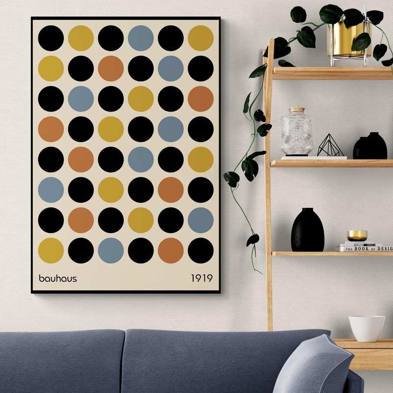 Generic Bauhaus Wall Art - Set of 3 Framed Canvas Prints - A2 (61cm x 41cm) - Ready to Hang
