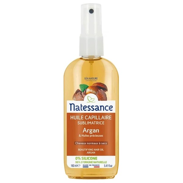 - Beautifying Hair Oil Argan No Rinse 160ml is a no-rinse oil care for the hair based of Argan and precious oils. This capillary oil contains 3 precious oil: Argan oil, Shea oil and Olive oil. They are concentrated at the right dose to nourish and sublimate your hair without weighing it down. After application, your hair are intensely nourished, softer and more brilliant. It doesn't leave any oily film on the hair. Formulated with silicon free. 98% of natural origin. Made in France.