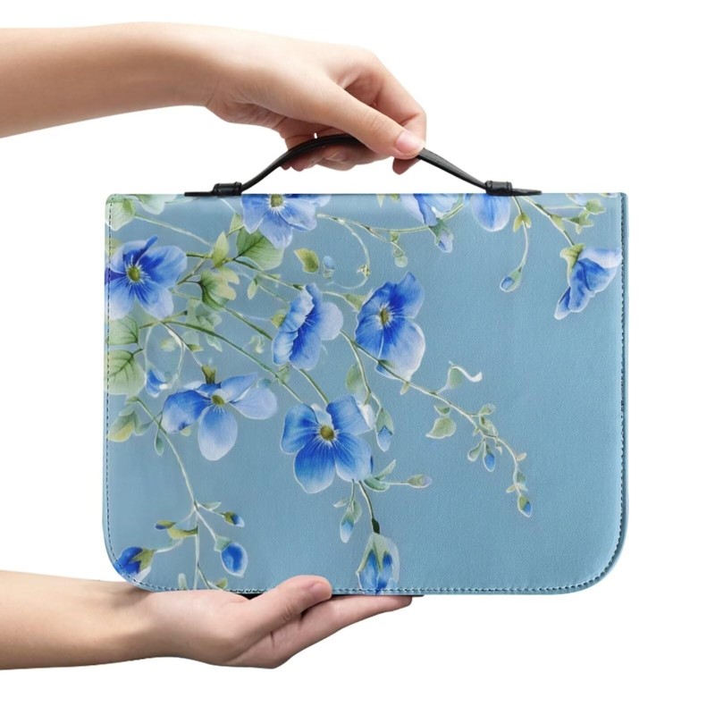 Generic Bible Cover PU Leather Book Protector Case with Handle, Zipper, Pockets & Pen Slots,Bible Cases for Women Girls,Blue Floral 2,XL