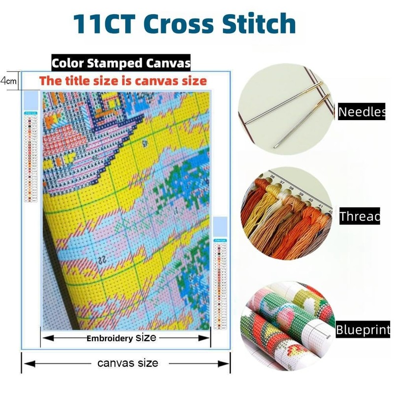 - WARM TIPS : This is DIY stamped cross stitch, not finished picture, need you finish it by yourself. If the cross stitch kits you receive misses any tool or thread , please contact us in time, we will deliver soon for free to allow you to complete beautiful cross stitch kits.