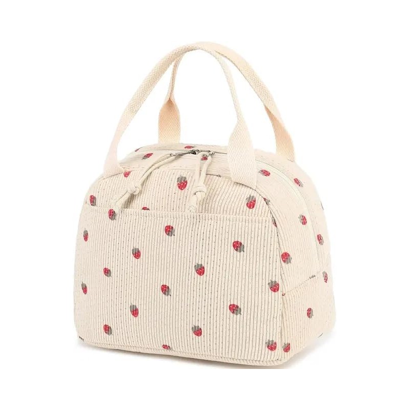 - stylish Corduroy Design: Features a charming strawberry pattern on durable corduroy fabric, perfect for adding a touch of fun to your lunch routine. Lunch bag women measures L10.1 x W 7.5 x H 7.5 inches, 0.37 pounds Suitable for both women and men, making it a practical and stylish option for anyone. Lightweight and easy to carry with comfortable handles, perfect for on-the-go use