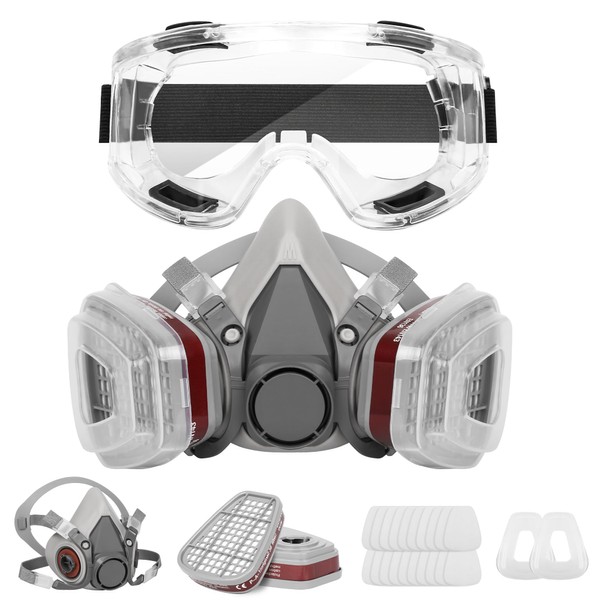 - el paquete incluye 1 funda de media cara, 1 gafas de seguridad, 2 cajas de filtro, 20 filtros de algodón.