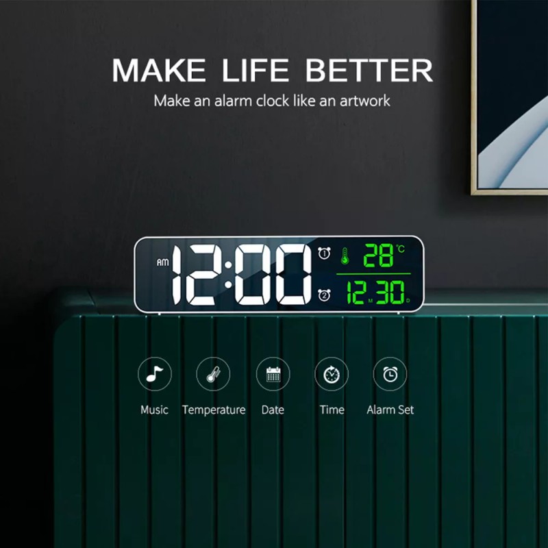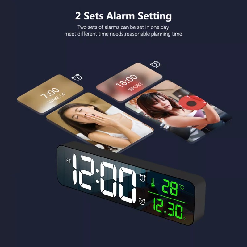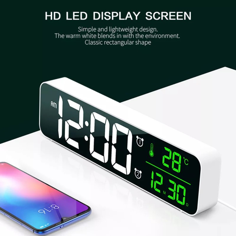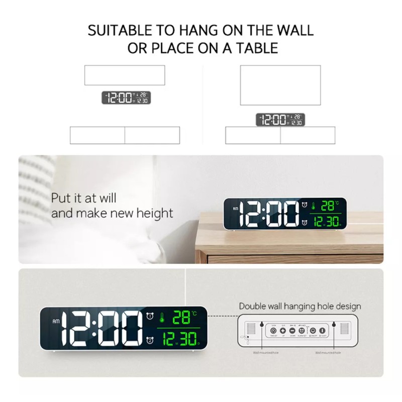 - Modelo: LED Digital Alarm Clock for Bedroom Electronic Clock with Thermometer 2 Alarms 5 Level Brightness 40 Rign Bell Music Wall Mount Mirror Clocks USB Charging for Bedside Desk Office