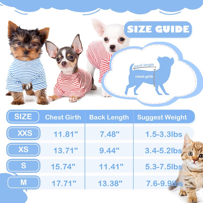- ★【 SIZE 】X-Small, 13.7" chest girth, 9.4" back. fits 3.4-5.2lbs dogs. This dog tee shirt is designed for extra small dogs like Teacup Dog, Teacup Chihuahua, Teacup Yorkie, Toy Poodle, cat etc.
