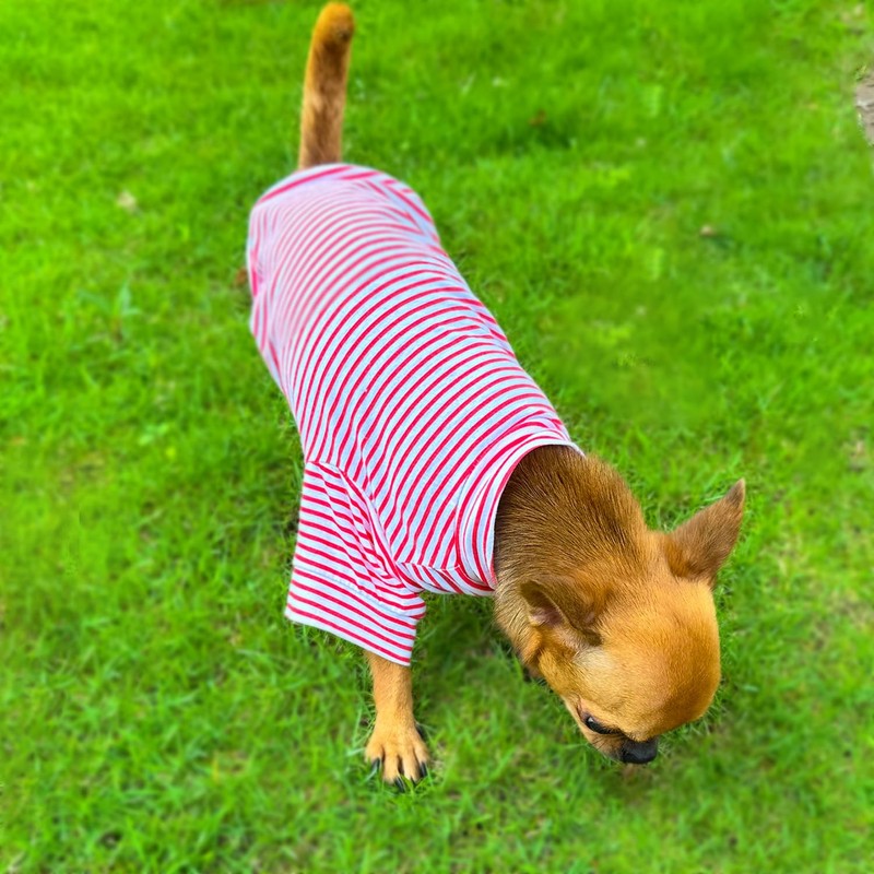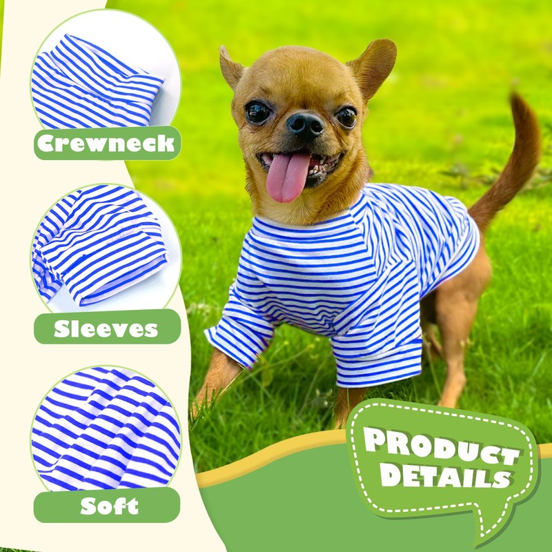 - Cute Striped Design pet clothes: The stylish red and blue striped pattern adds a touch of charm to your dog's wardrobe, making them stand out wherever they go. Perfect for both male and female small dogs.