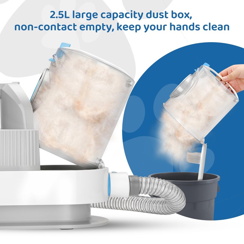 - 【Easy to Clean】The pet vacuum grooming is designed with a 2.5L large capacity easy-to-clean dust cup . The hair collector can be easily opened with one finger, and the use of MIF filter, can be washed and dried several times, does not affect the suction powermaking the cleaning process simple and hassle-free