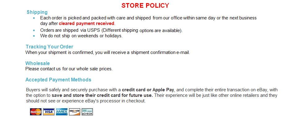 Please read our policy carefully before making a purchase.