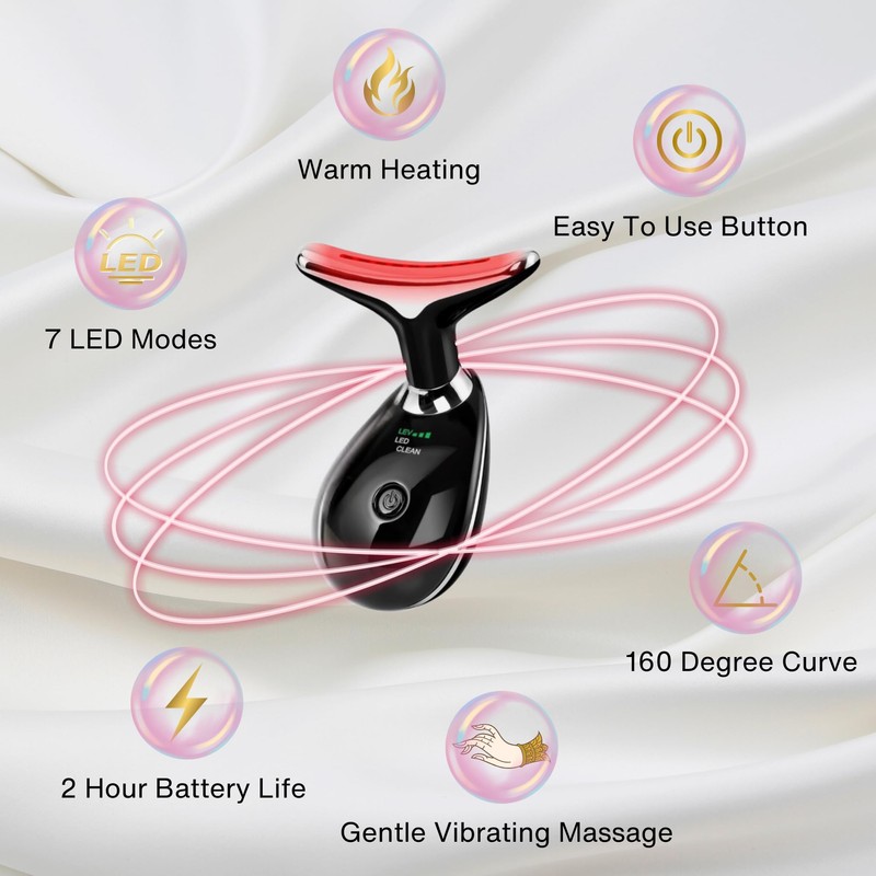 Generic Face and Neck Massager, 7 Color Face Neck Tool, Anti-Wrinkle Facial device (Black)