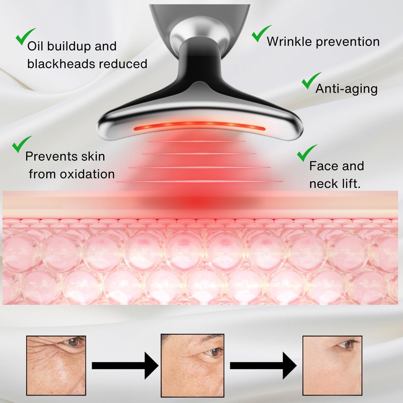 - (PREMIUM SKIN CARE DEVICE) This facial massager will heat up to 113 degrees Fahrenheit(45 degrees celsius), which allows the skin to absorb creams or lotions quicker and more effectively, so that your skin will shine and tighten.