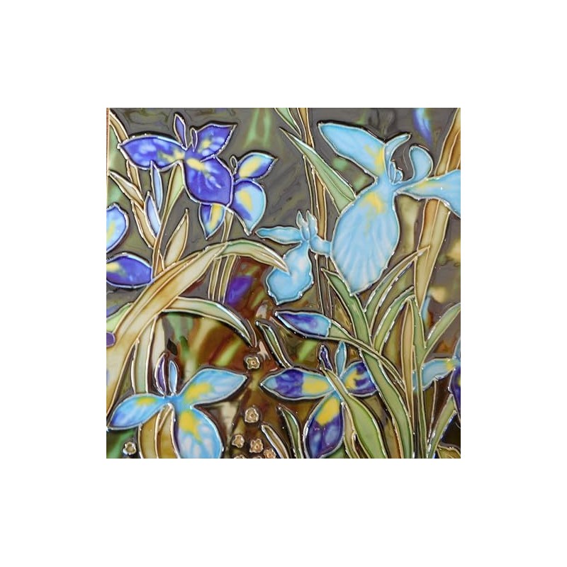 Generic Flower hand painted ceramic art tile 8x8 inches with easel back, Blue