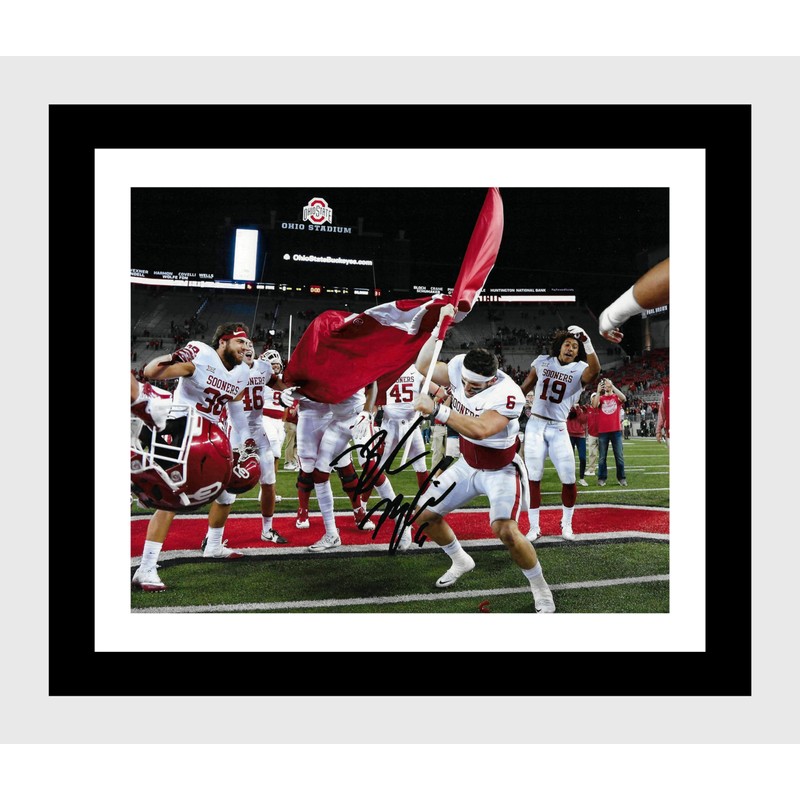 Framed Baker Mayfield - Planting the Oklahoma Flag - Autograph Promo Print (Black, 16x20)