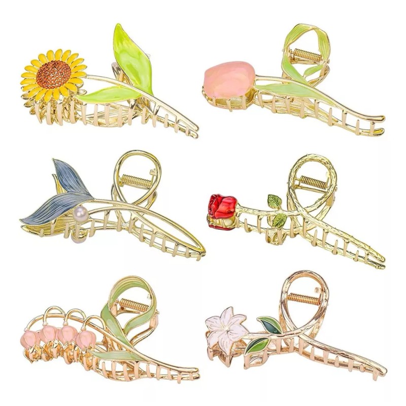 Generic . Ganchos De Cabello De Metal Con Diseño De Flor, 6 Piezas