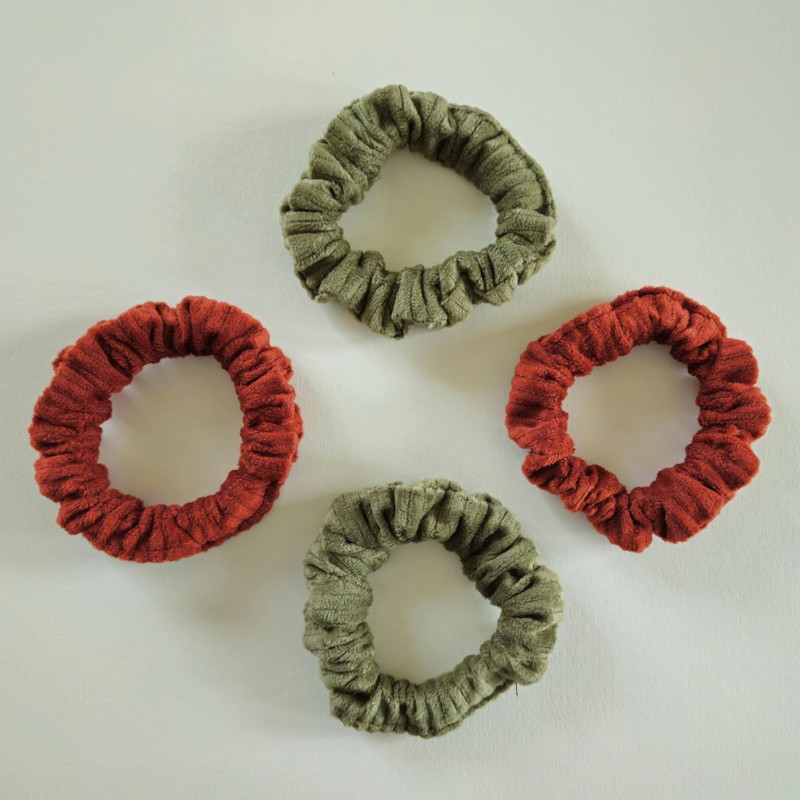 Generic Handcrafted Set of 4 Plush Velvet Hair Scrunchies - Fashionable Hair Accessories for Women, Stylish Scrunchy Hair Bands in Red and Green