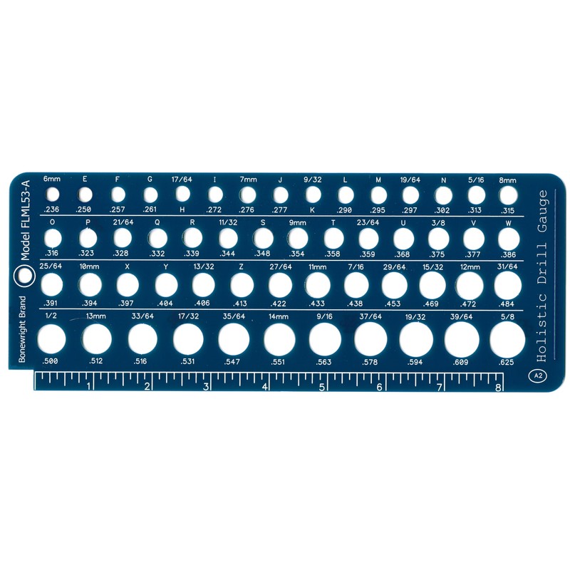 - Same Bonewright Brand Quality as our Model FNM92-B Holistic Drill Bit Gauge for smaller size drill bits. Made of rigid, durable military-grade fiberglass.