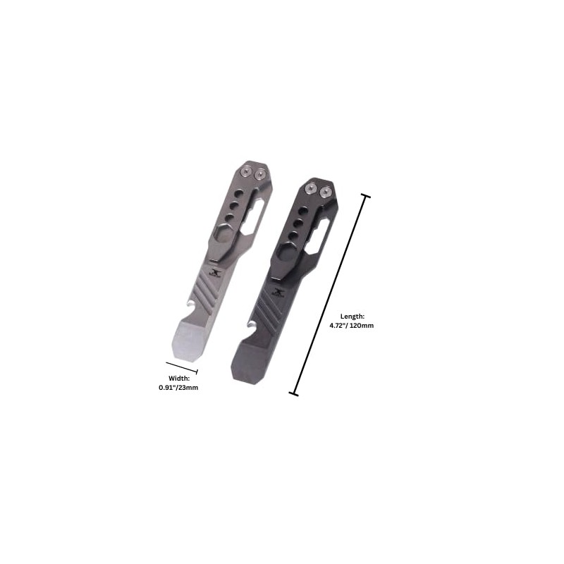 All-in-one Design, with multi functions of thumbtack puller, box opener and bottle opener. Pry end could be used to open the clear box tape on the package. If you are like most people who are looking for a convenience in EDC tool, you'll be glad with the functional all-in-one EDC tool. Portable & Compact. Weight only 1.45oz/ 41g, won't add to more extra bulk in your pocket. Length: 4.72"/ 120mm, ; Width: 23mm(18.5mm)/ 0.91"(0.73") ;Thickness: 0.24"/ 6mm. Combined EDC tools you need for everyday carry, portable and convenient. Made of TC4 titanium alloy material. High strength. A EDC tool for everyday carry to use, not suitable for large heavy work.