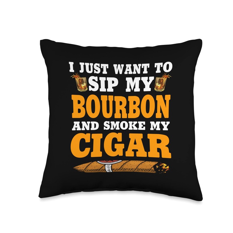 Generic I Just Want to Sip My Bourbon and Smoke My Cigar Funny Quote Throw Pillow, 16x16, Multicolor