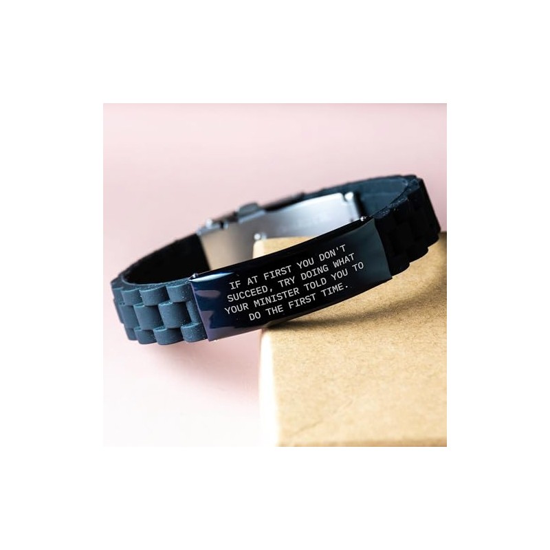 - Minister's wise advice is now something you can wear! Engraved with the unforgettable quote, "If At First You Don't Succeed, Try Doing What Your Minister Told You To Do The First Time.", this sleek Glide lock Clasp Bracelet serves as a constant reminder to trust in guidance and seek wisdom from trusted sources like your Minister.