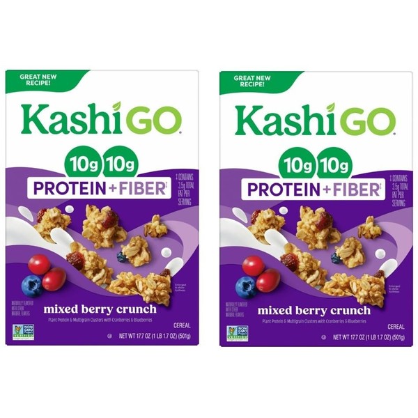 Generic Kashi Go.Cold Breakfast Cereal - Vegan Protein - Fiber Cereal - Mixed Berry Crunch - 17.7 Oz Box - Pack of 2