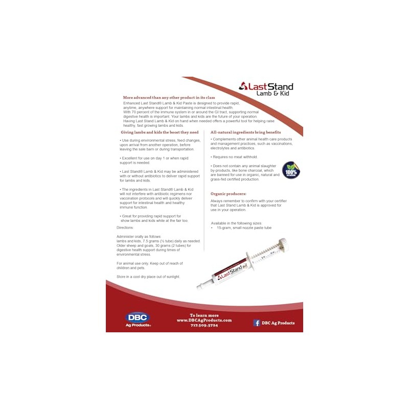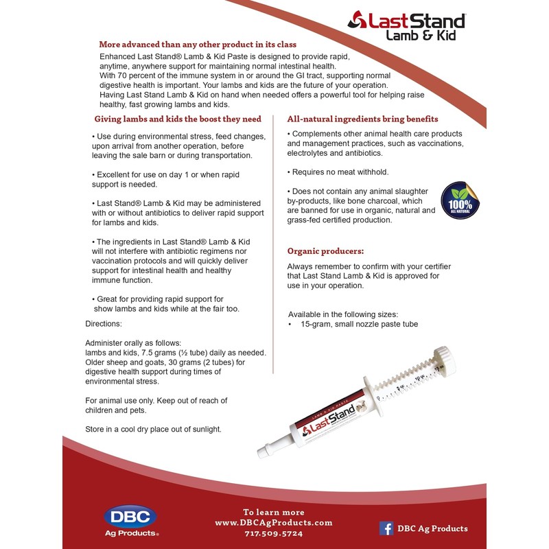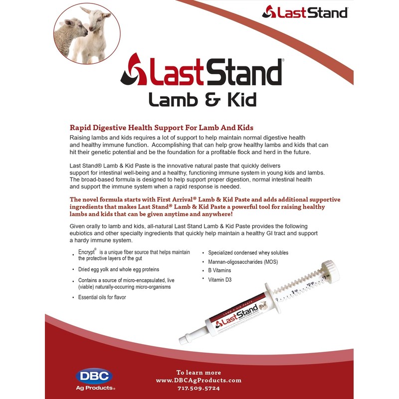 Given orally to lamb and kids, all-natural Last Stand Lamb & Kid Paste provides the following