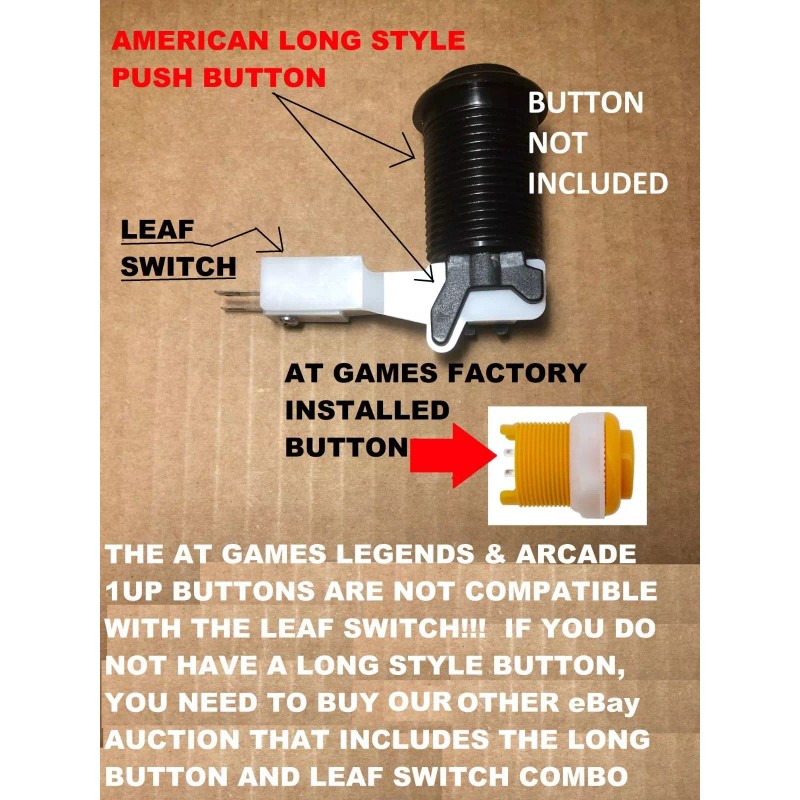 If you are installing these into an Atgames Legends or Arcade1Up Pinball Machine, You need to buy our Button & Leaf Switch COMBO ebay auction (red or black button). DO NOT BUY THIS eBay auction. See our other eBay auctions.