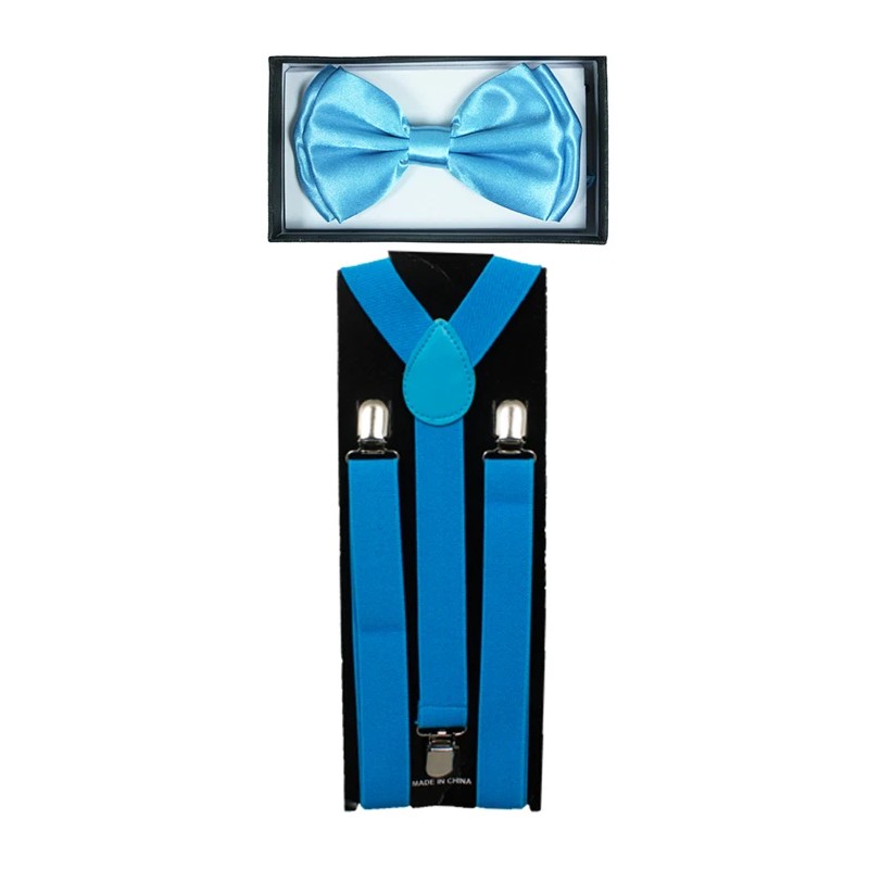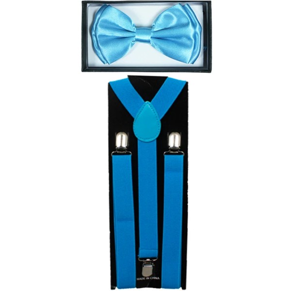Generic LIGHT BLUE SUSPENDERS and BOW TIE COMBO SET Unisex Adjustable Suspender Bowtie