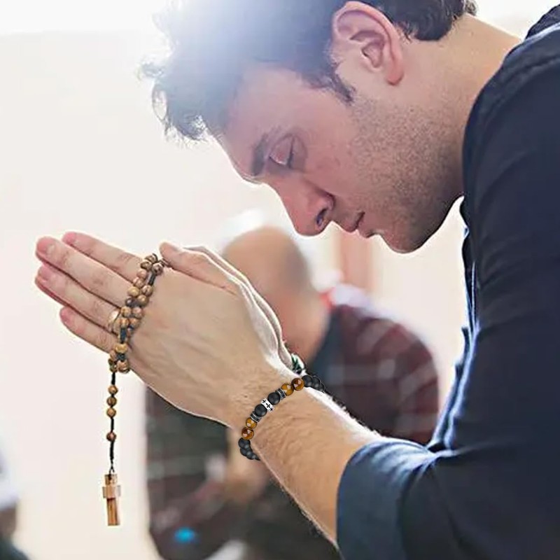 Generic Men Bracelet Set Tigers Eye Bracelet 8mm Black adjustable Beaded Summer Cuff Charm Bracelets for son Husband Elegant Cross Bracelet (Christian Men)