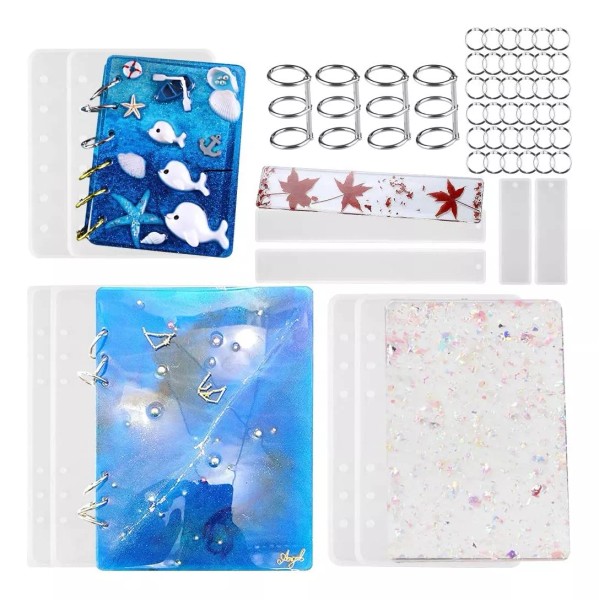 50 fundas de libreta de resina, moldes de resina epoxídica fundida transparente, fundas para libros A6, A5, A7 con 40 anillas y marcapasos.