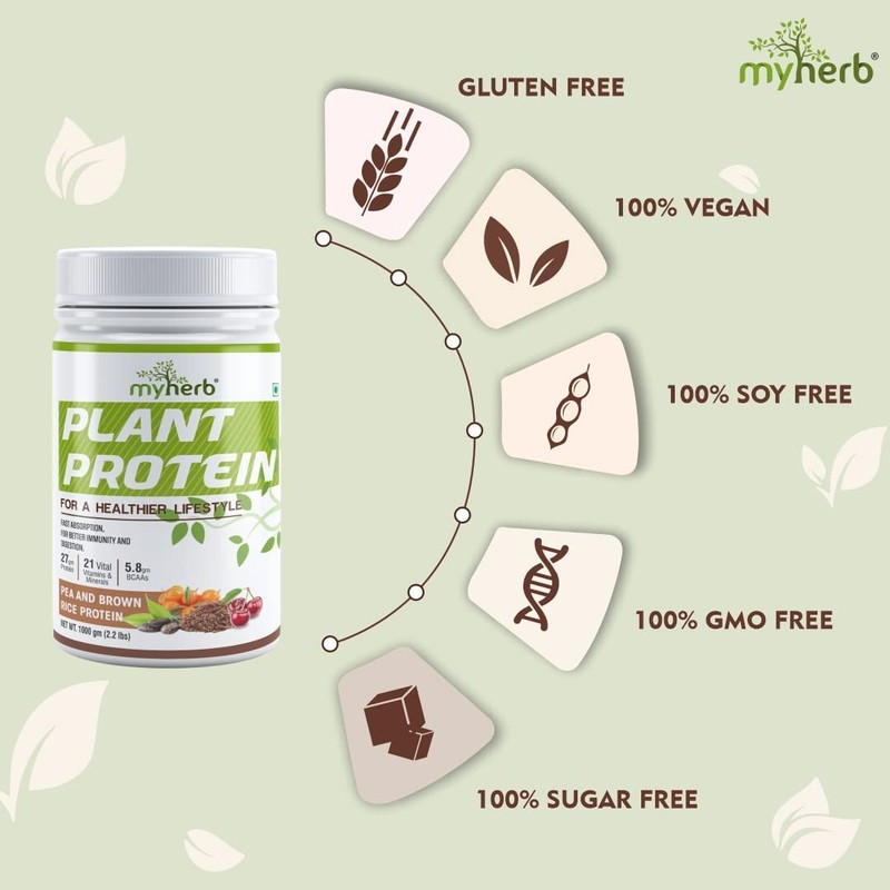 Generic MYHERBS Plant Protein Powder | Pea and Brown Rice Protein Powder | Vegan High Protein Powder | 27 gm Protien,21 Vital,6 gm BCCAs | Sugar Free | for Men and Women | Chocolate Flavour (1 Kg)