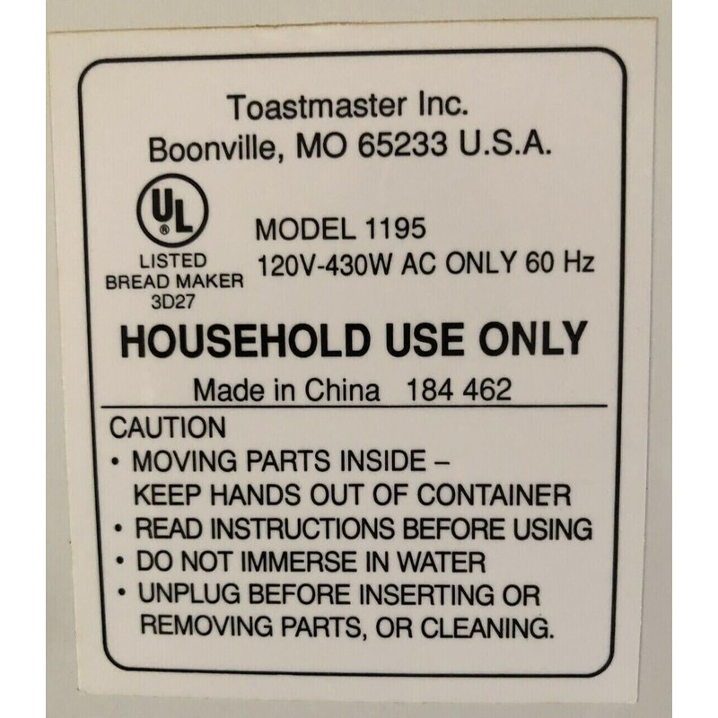 - Fits Toastmaster Bread Maker Machine models 1195 1195A only!