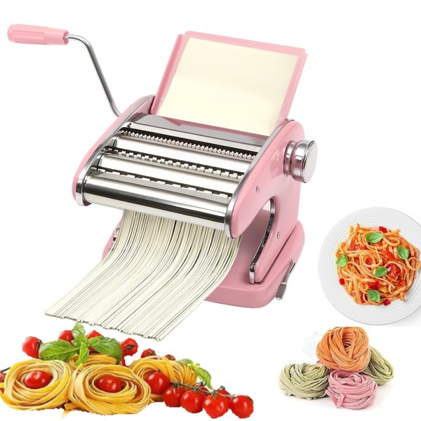 Generic Pasta Maker Machine, Stainless Steel Pasta Roller with 6 Adjustable Thickness Settings and 3 Widths, Pasta Cutter with Handle, Manual Noodle Maker Perfect for Spaghetti Dumpling Skin (Pink)