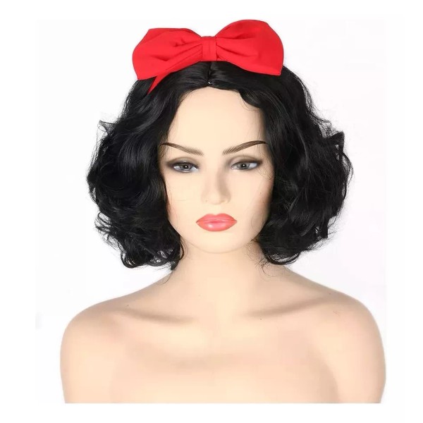 generic Peluca De Mujer Negra Corta Rizada Blanca Nieve Cosplayresi