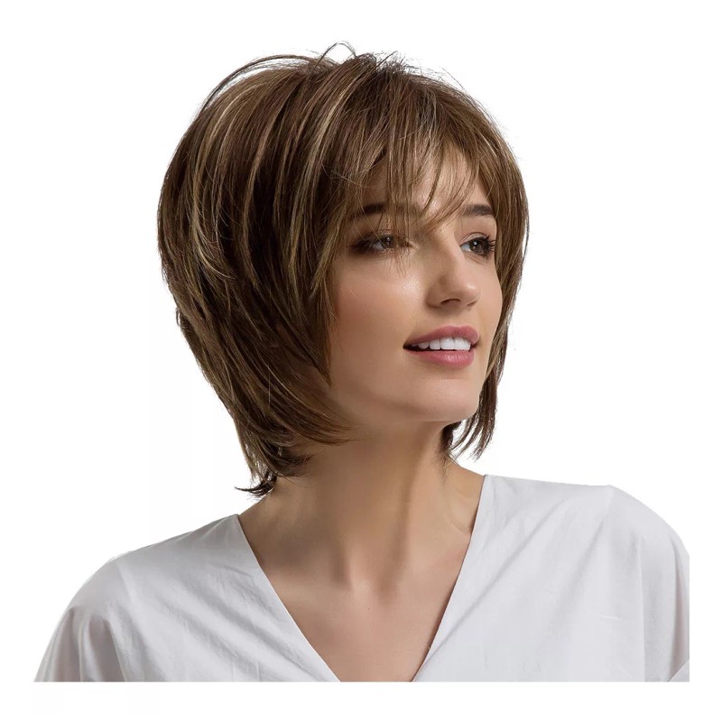 - Modelo: Natural Brown Short Hair Side Parting Synthetic Female Daily Wig New